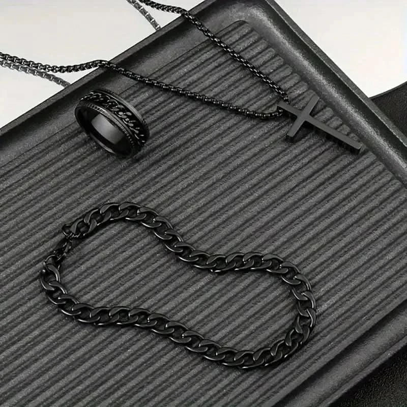 Are you searching for a minimalist and timeless accessory to elevate your style? Look no further than our 3pc Minimalist Cross set from Stone Ember. This set includes a necklace, bracelet, and ring, all featuring a simple and clean cross design. The perfect addition to any outfit, this set is versatile and can be dressed up or down for any occasion. Made with high-quality materials, this set is built to last and will add a touch of sophistication to your look. Don't miss out on this must-have accessory for anyone looking for a well-rounded and impressive look.