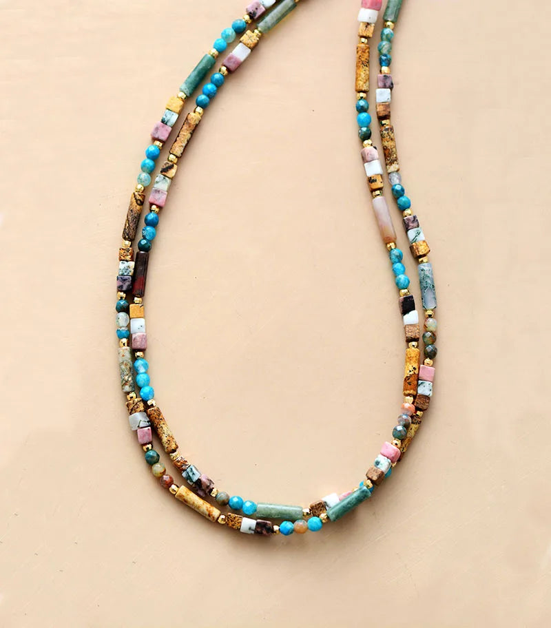 A stunning addition to any bohemian-inspired outfit, this natural stone necklace is the perfect accessory for adding a touch of earthy elegance. Measuring around 18 inches in length, this necklace features a unique bohemian design that is sure to make a statement. The natural stone adds a touch of rustic charm, while the overall style exudes a free-spirited and carefree vibe. Whether you're dressing up for a special occasion or adding a touch of boho to your everyday look, this necklace is a must-have for any fashion-forward individual.