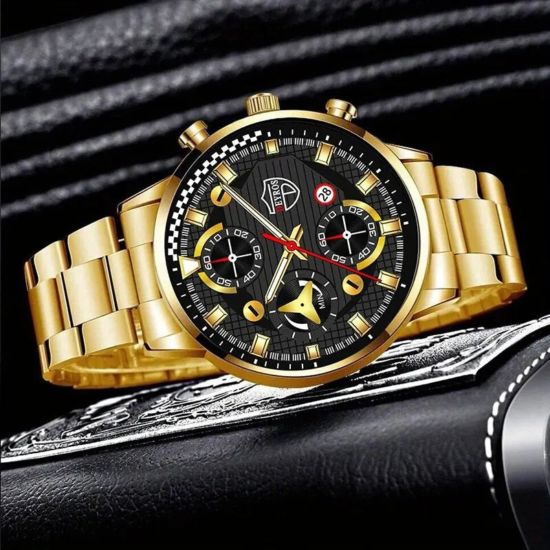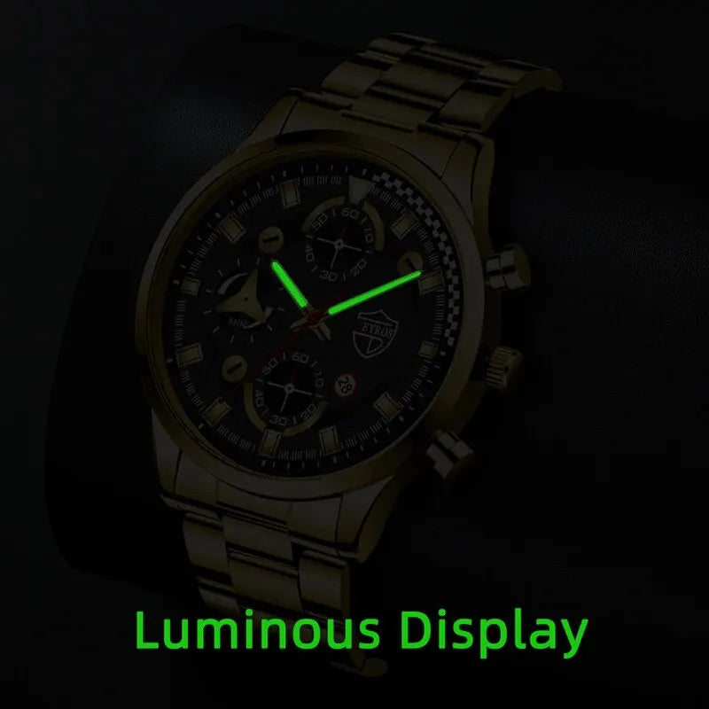 Crafted with high-quality materials, this watch set is both durable and stylish. The luminous feature adds a touch of functionality, making it easy to read the time in any lighting. The stainless steel band and case give it a sleek and modern look, while the quartz movement ensures accurate timekeeping. Please note that this watch is not waterproof, so it is not suitable for swimming or showering.