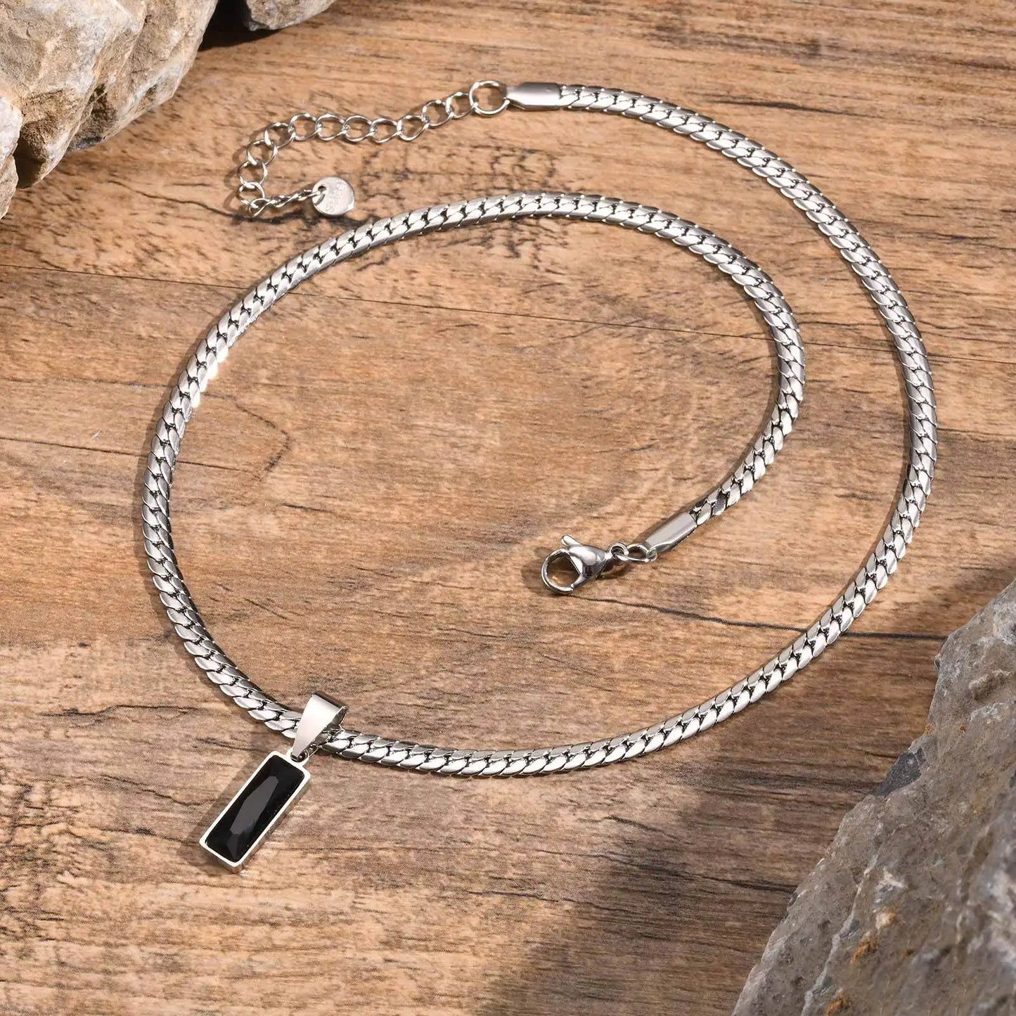 This necklace is designed for the modern man who values both style and quality. The black stone pendent adds a subtle yet eye-catching element to any outfit, making it suitable for both casual and formal wear. Whether you're dressing up for a special event or simply want to elevate your everyday look, this necklace is the perfect accessory to complete your ensemble.