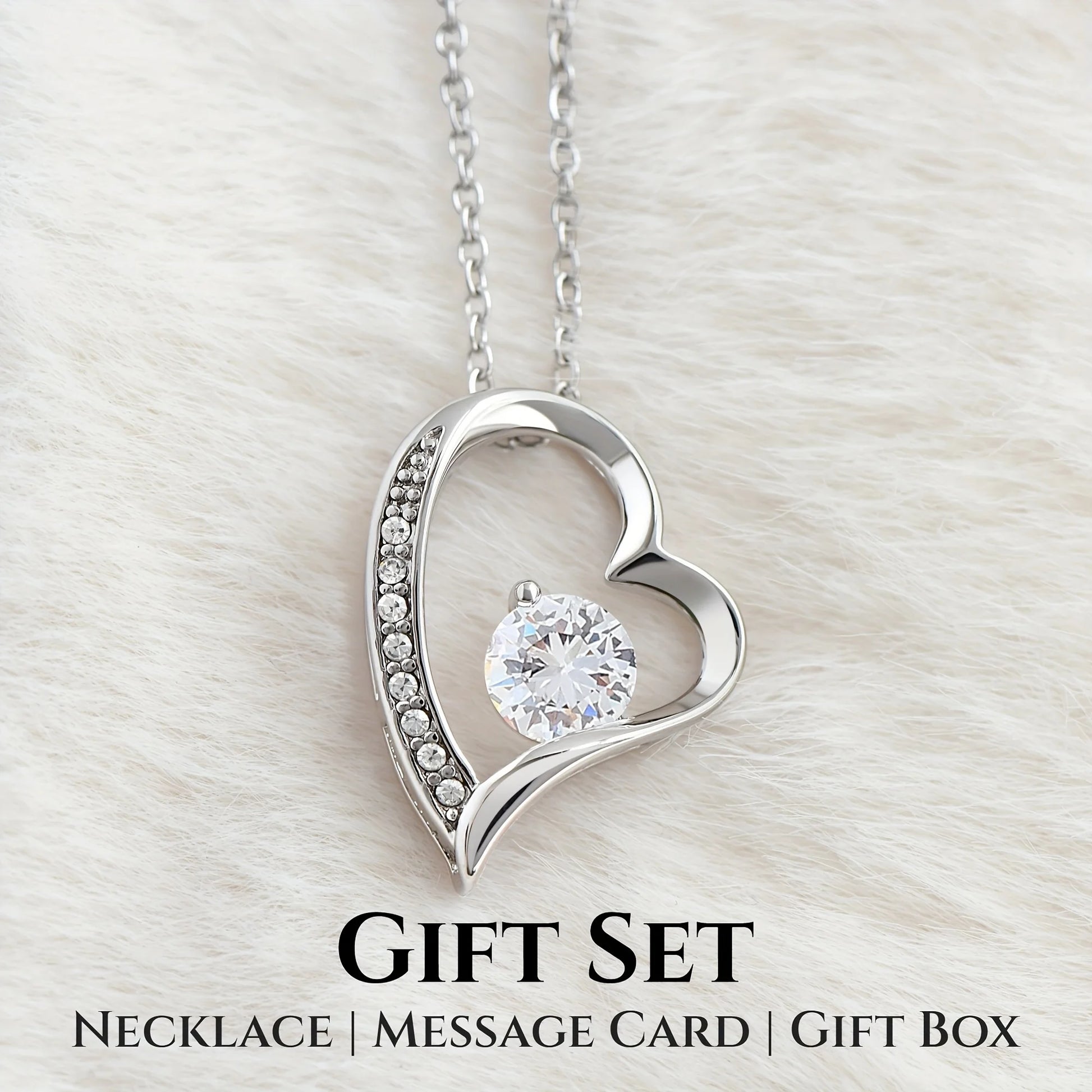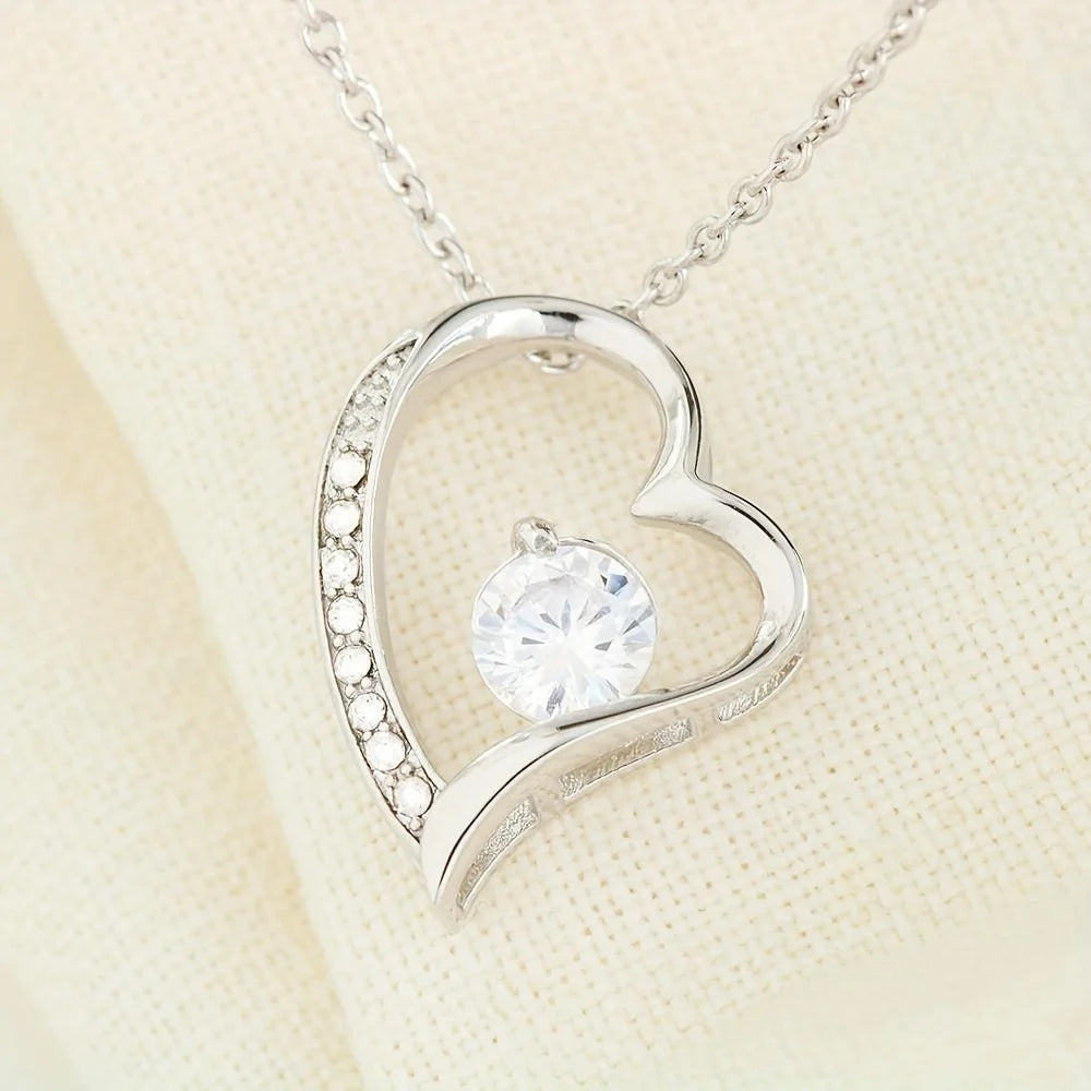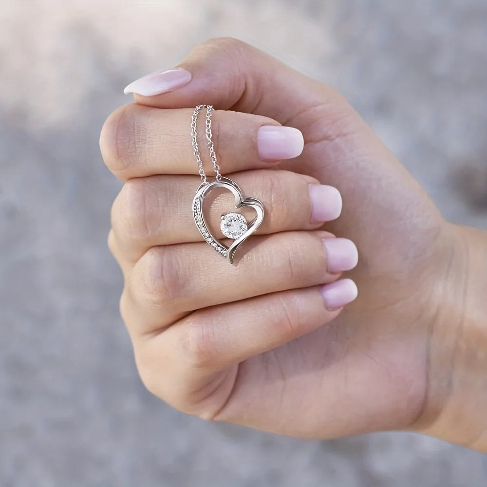 The Forever Love Necklace from Stone Ember is the perfect gift for your best friend. This stunning necklace features a 6.5mm CZ crystal surrounded by a heart pendant adorned with smaller crystals for added sparkle. Available in white gold over copper, this necklace is a classic and timeless piece that she can wear every day.