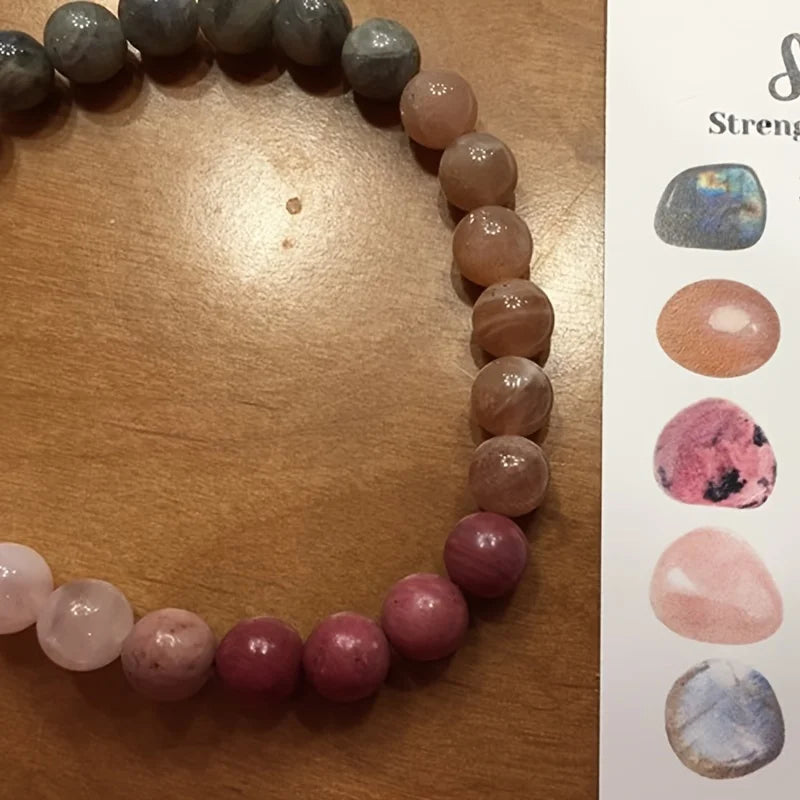 The bracelet features a delicate chain adorned with a variety of crystals, including rose quartz, amethyst, and citrine. Each crystal has its own unique properties, but together they create a powerful combination for promoting self-love, confidence, and emotional balance.