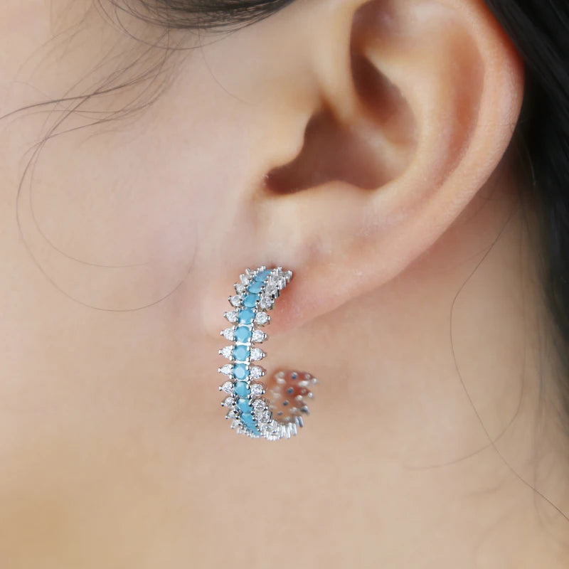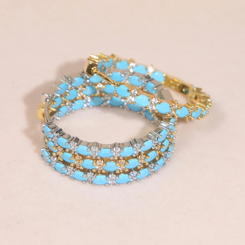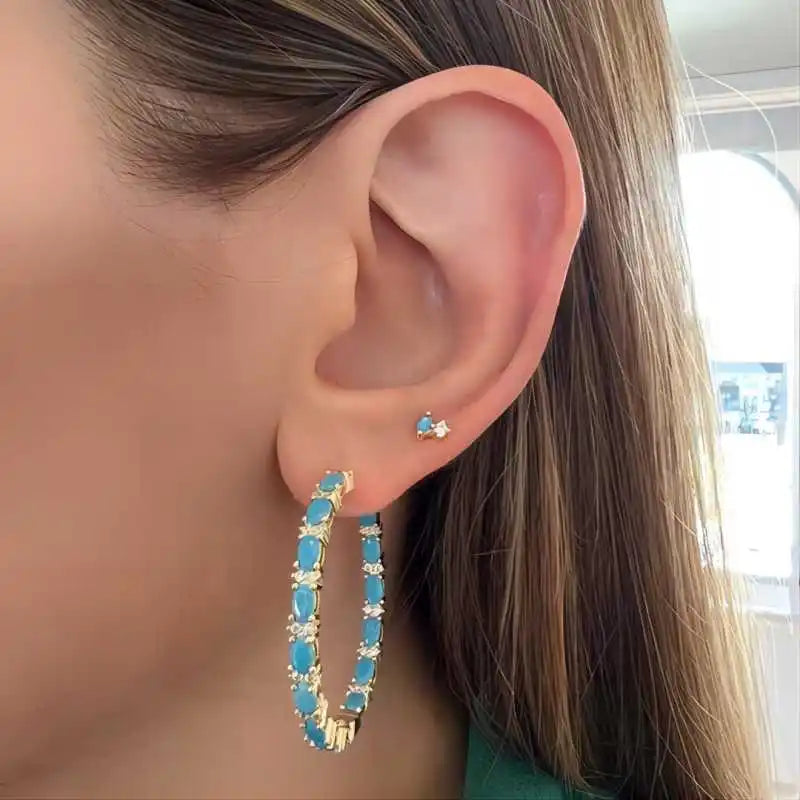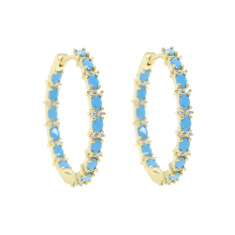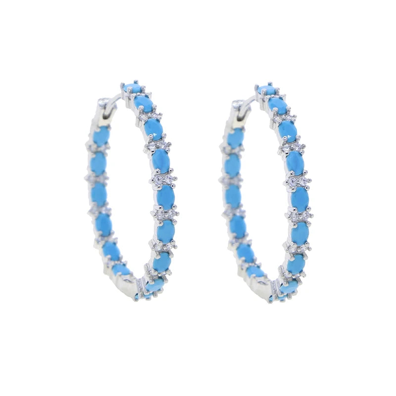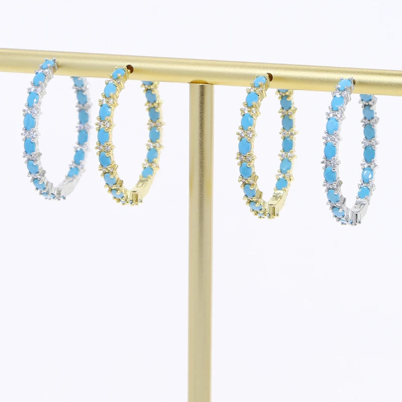 Simple Blue Turquoise Hoop Earrings