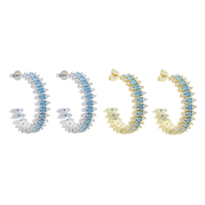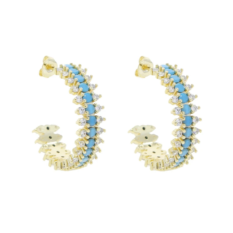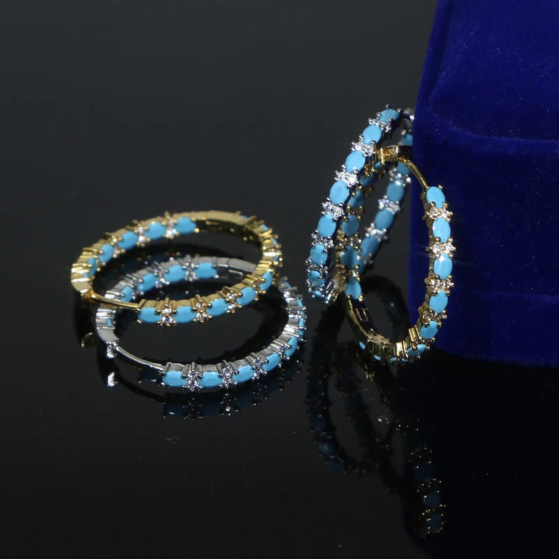 Add a pop of color to your outfit with these stunning blue turquoise hoop earrings from Stone Ember. These earrings are perfect for any occasion, whether it's a casual day out or a special event. The main stone is made of 5A cubic zirconia, giving it a beautiful sparkle. The earrings are plated with 18K gold and platinum, ensuring a high-quality and long-lasting finish. The hoop design adds a touch of elegance, while the round shape and size of 35mm*35mm make them a versatile accessory for any outfit.