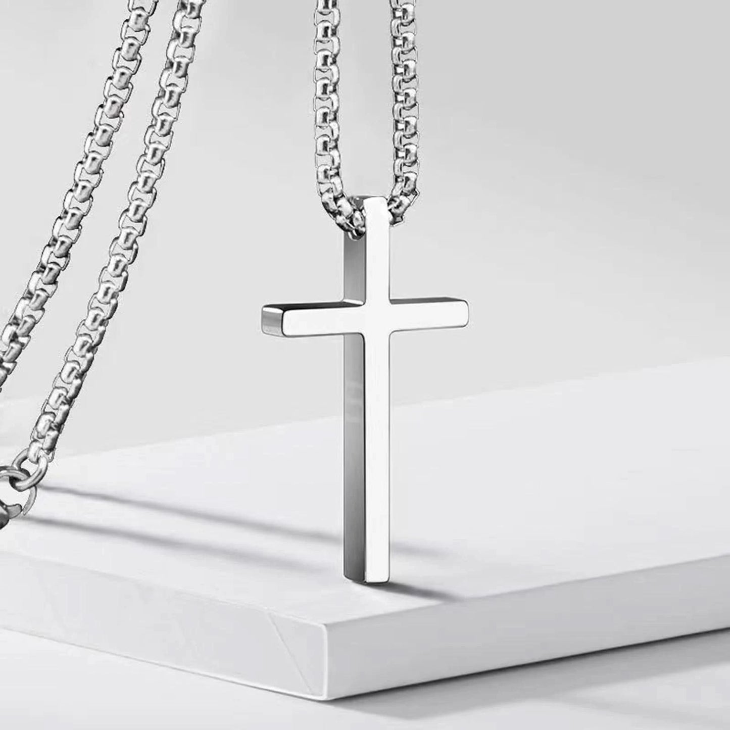 This timeless and versatile necklace from Stone Ember is the perfect accessory to complete any outfit. Made with high-quality stainless steel, it is durable and long-lasting. The simple cross design adds a touch of elegance and meaning to the necklace, making it a great gift for any man. The box chain adds a modern and stylish touch to the overall look. Whether worn casually or for a special occasion, this necklace is sure to make a statement. Upgrade your accessory game with this standart cross necklace for men.