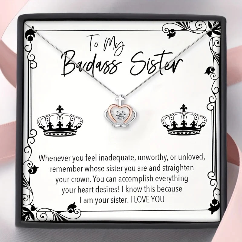 The necklace is designed to shine and catch the eye, just like your sister. It is a beautiful reminder of the bond you share and the love you have for each other. Whether it's for a special occasion or just to show your appreciation, this necklace is sure to make your sister feel loved and appreciated.