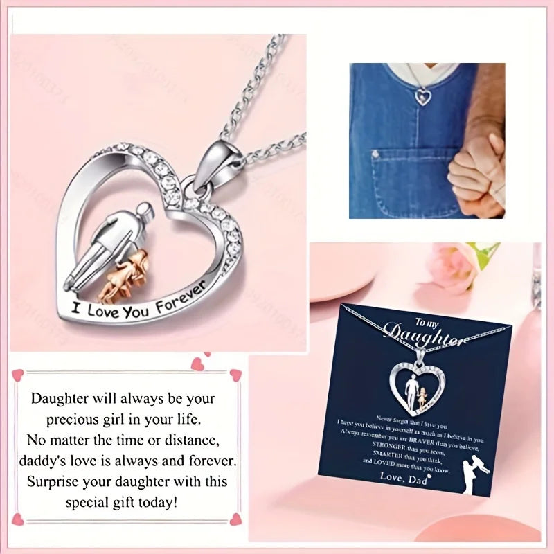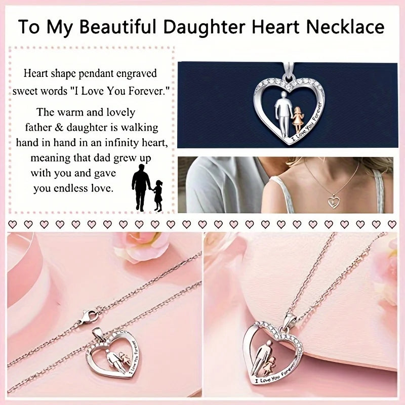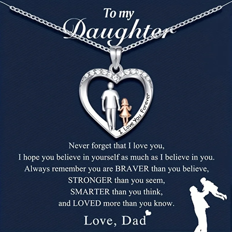 Express your love for your daughter with our heart-shaped pendant necklace. The inscription 'Dad Daughter' adds a special touch to this beautiful accessory. Our skilled craftsmen pay attention to every detail, ensuring a high-quality and exquisite design. This necklace is perfect for any occasion and comes with a gift box and card, making it a thoughtful and convenient gift option. Made with durable materials, this necklace will be a cherished piece for years to come. Show your daughter how much she means to you with this heartfelt necklace.
