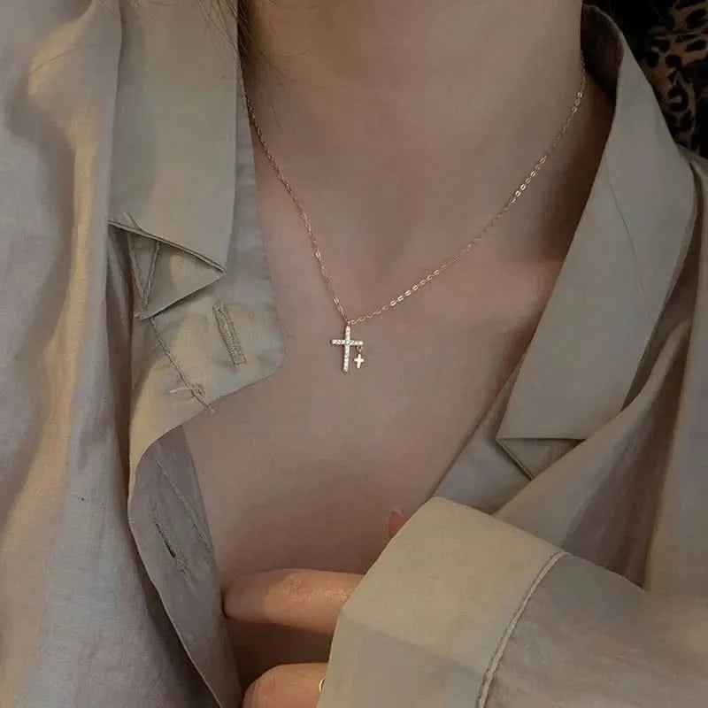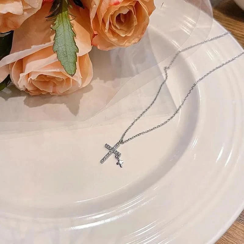 A symbol of faith and protection, this simple necklace is a great addition to any collection. The double cross design adds a unique touch to the traditional symbol, making it a stylish and meaningful accessory. The necklace is made with a link chain, ensuring durability and a secure fit. It is the perfect piece to wear daily or for special occasions, and also makes a thoughtful gift for loved ones. Show off your faith and add a touch of elegance to your outfit with this beautiful double cross necklace.